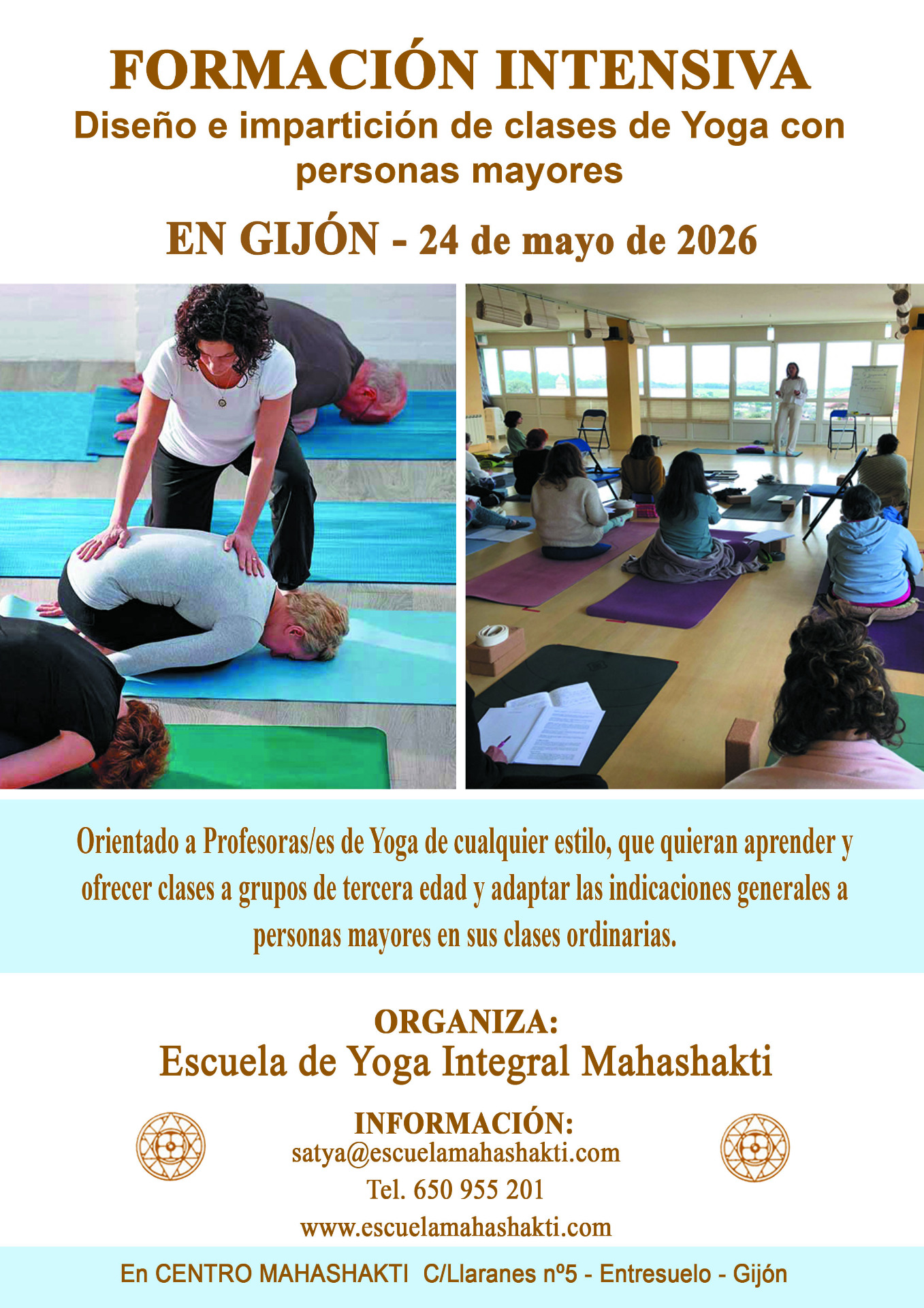 PROXIMAMENTE: CURSO ESPECIALIZADO EN DISEÑO E IMPARTICIÓN DE CLASES DE YOGA INTEGRAL CON PERSONAS MAYORES Gijón 2026 contacta para más información y reservas: 650 955 201